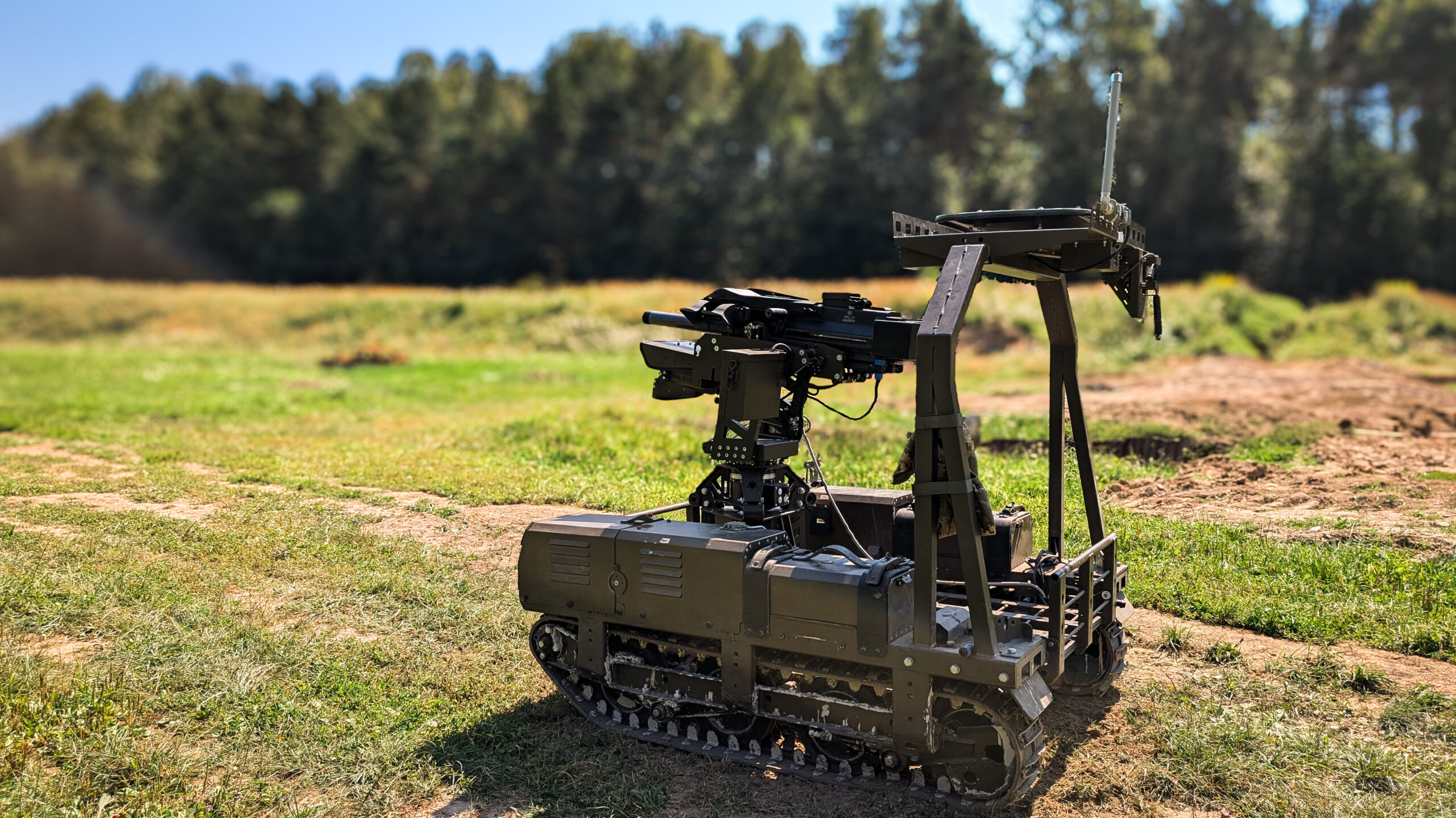Reconnaissance-strike GRC combining a tracked mobile platform, the Wolly 40 combat module adapted for the Mk-19 40 mm grenade launcher, and the universal Droid Box GRC control system.