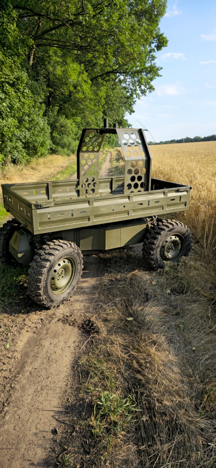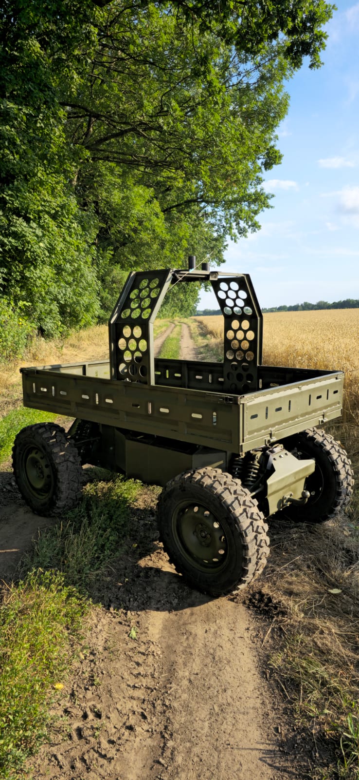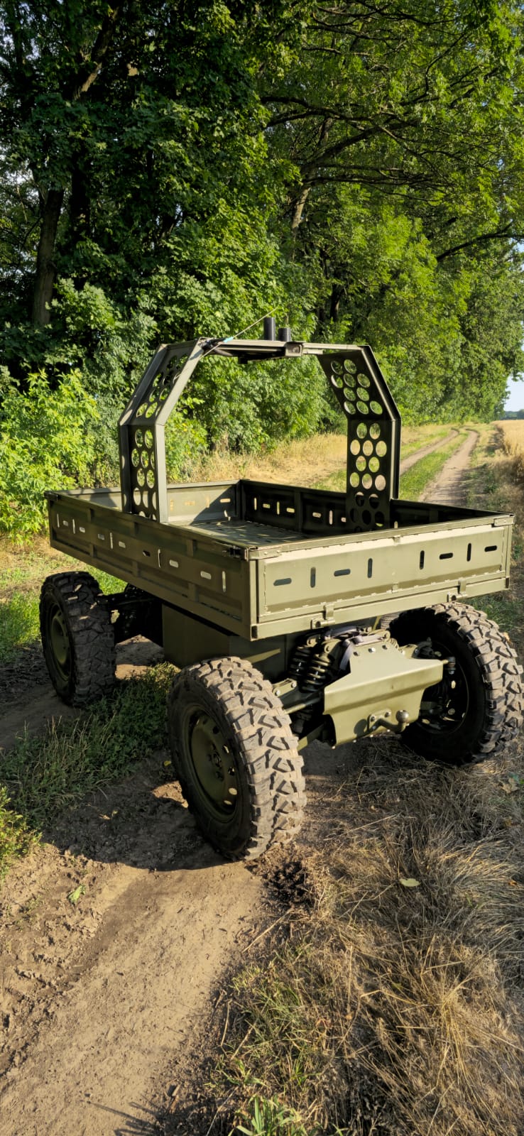 Безпілотний наземний комплекс для транспортування озброєння та вантажів у бойових умовах із вантажопідйомністю до 400 кг.